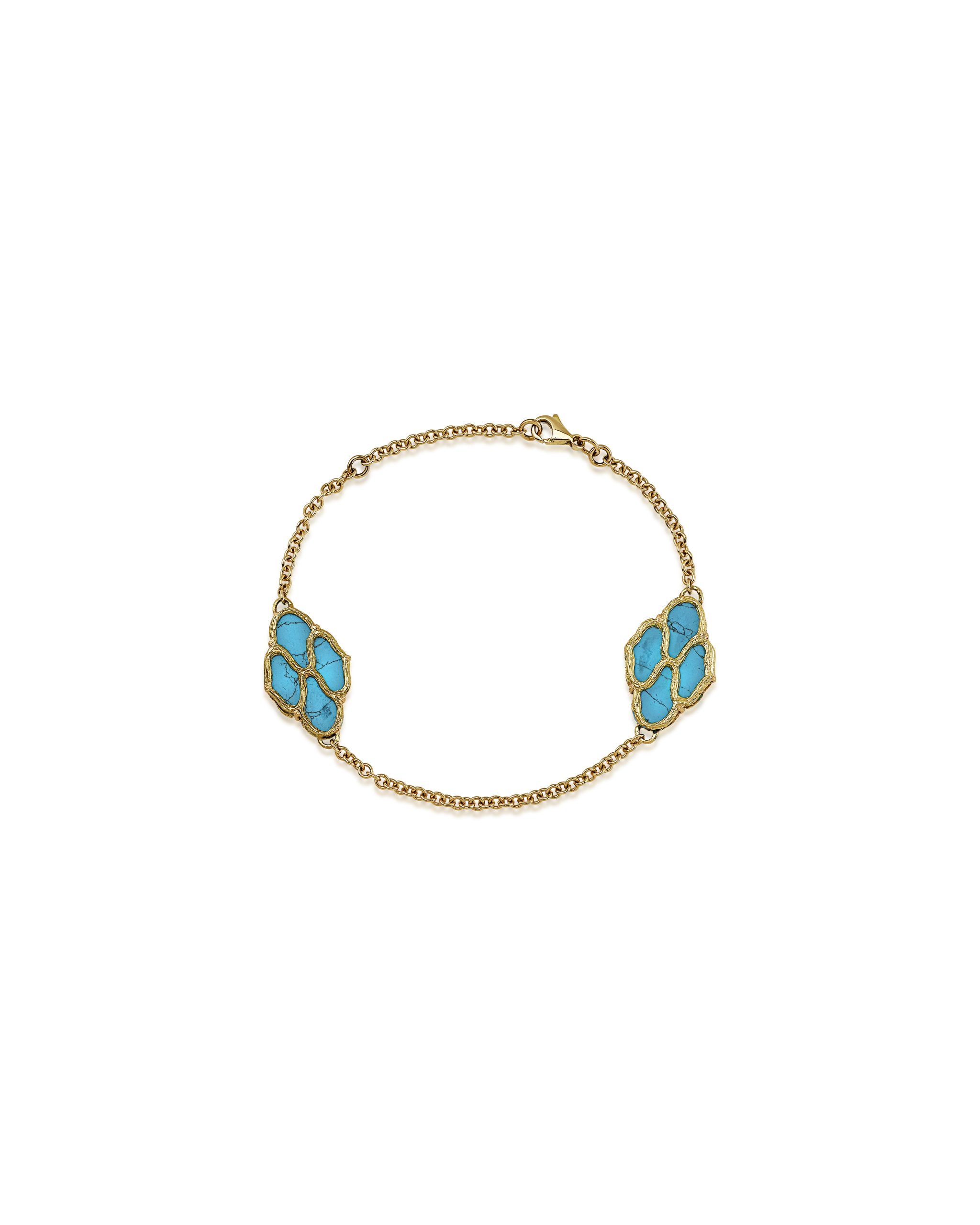 Yellow Gold Bracelet With Gold TURQUOISE Inserts g 8, 21 cm Adjustable 18 cm